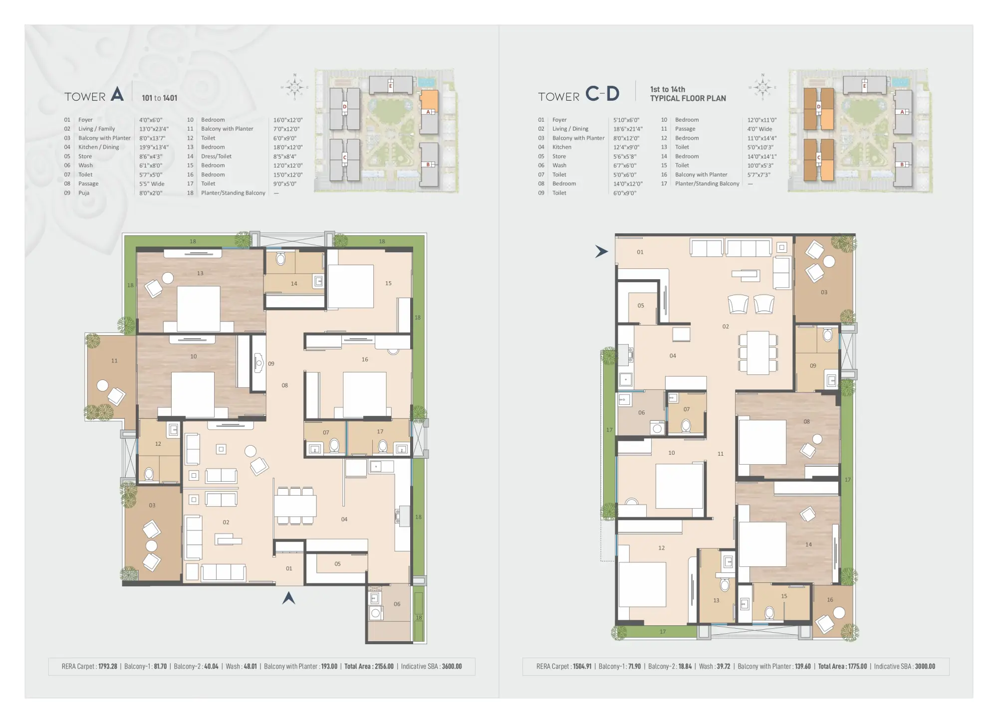 Vastu compliance & well ventilated spacious apartments with 2 design options.
